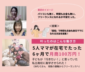 ✔ 子どもの進学費用に悩んでいた5人ママが ✔ 時間もお金もないワーママが義両親や子どもたちを ✔ 仕事で夢を諦めた社会人1年目女子が ✔ 手取り17万円夜勤介護職から ✔ 会社に不満しかなかった人生から ✔ 会社の給料しかなかった歯科衛生士が ✔ アルバイト掛け持ち生活から 等 |