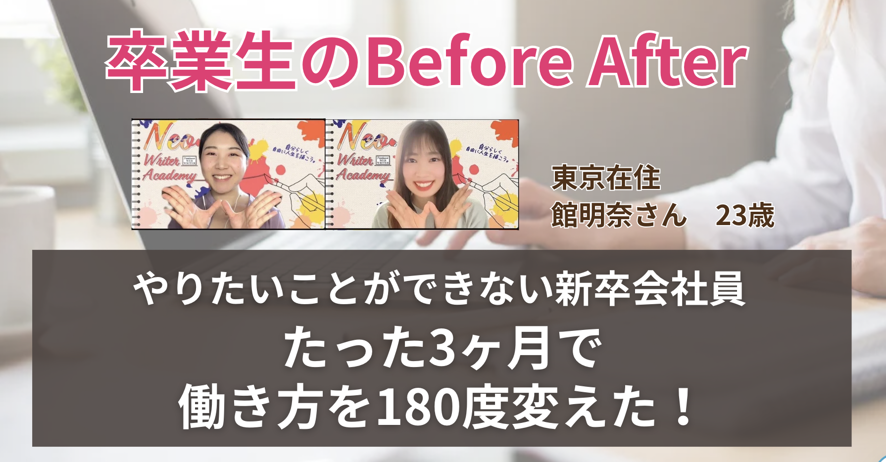 実は、明奈さんは2021年に創設した旧ネオライターアカデミーの1期生であり、最初の卒業生!けれど、しっかり3ヶ月後にはフリーランスになっていきました!