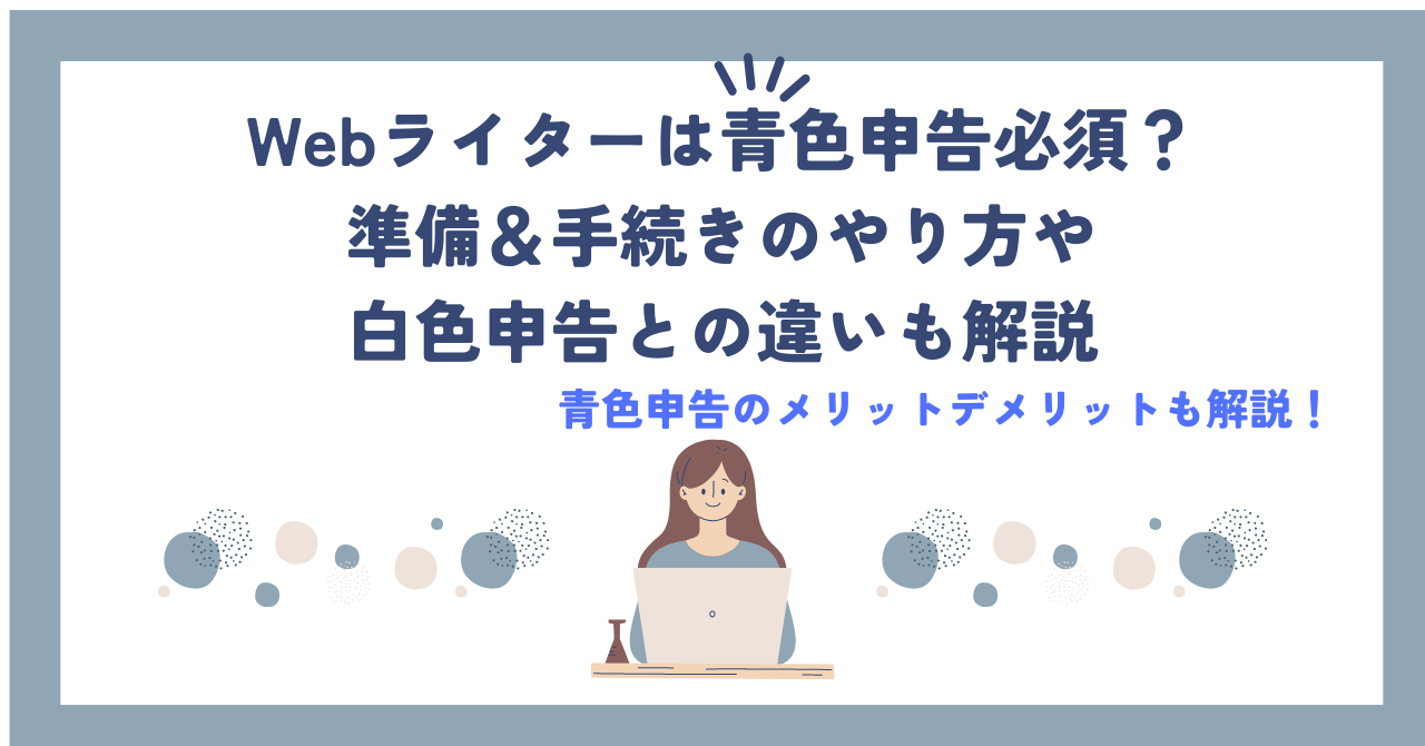 青色申告は、しっかりと準備していけば難しくありません。事前準備を進めて青色申告することで、Webライターとしての収入を最大限に活用し、安定したフリーランス生活を送れます。青色申告は記帳の手間や申請に一定のルールがあるため、しっかりと準備をすすめましょう。この記事を参考に自分にとって最適な申告方法を選んで、節税しながらWebライター活動を続けてくださいね。