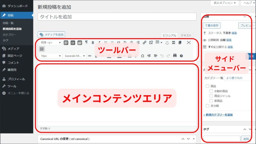 ここではそれぞれの機能を紹介しながら、記事の投稿方法を解説します。