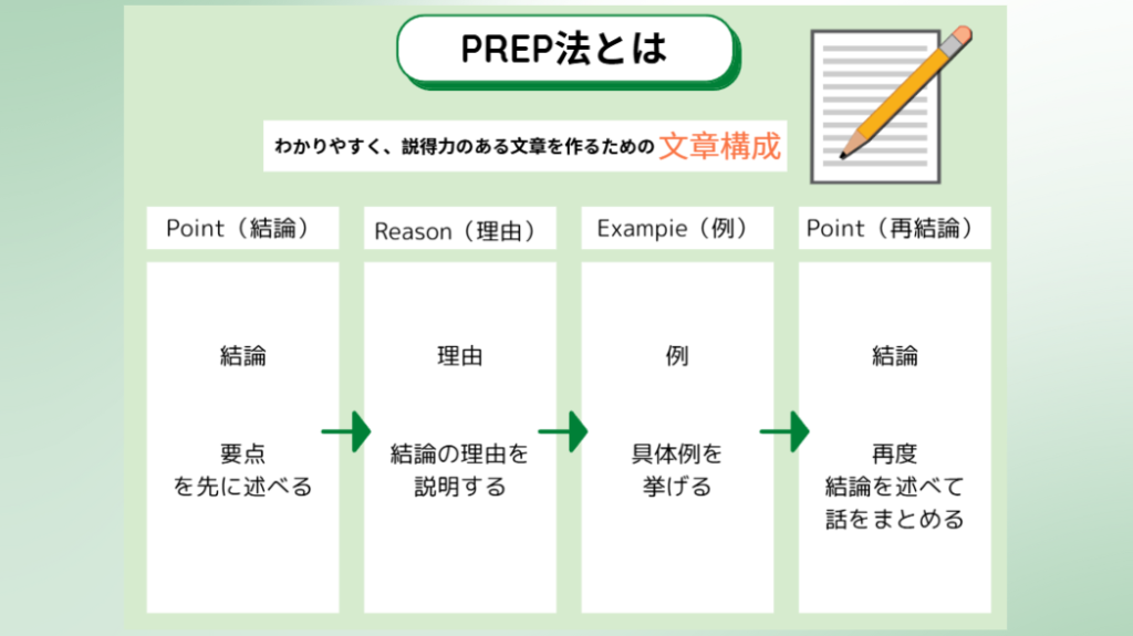 PREP法は論理的で分かりやすい文章を書くのに最適です。