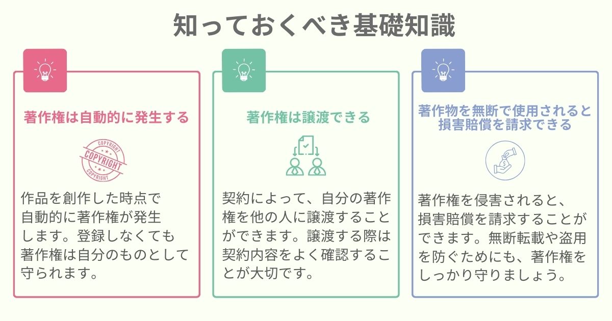 Webライターとして活動していくためには、著作権に関する基礎知識を知ることが不可欠です。