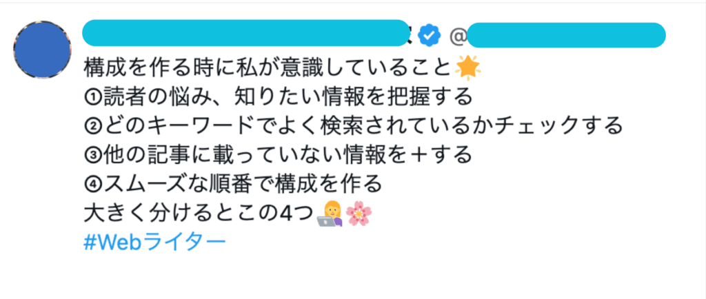 いかがでしょうか?Webライターが「知りたい!」「この人の投稿は学びになる!」と思ってもらえるような発信をすることで、フォロワーの増加や拡散力アップに期待できます。